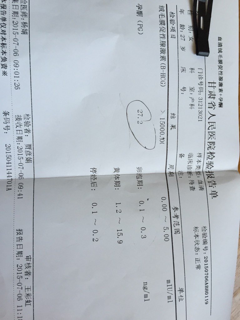 今天是45天,孕酮检查结果是27.2ng/ml,绒毛膜促性腺激素(B-HCG)>15000.0能 今天是45天,孕酮检查结果是27.2ng/ml,绒毛膜促性腺激素(B-HCG)>15000. 0能确定是怀孕了吗?还有就是这些数值正常吗?麻烦各位专家、宝妈给看看,谢谢啦 点击展开 橙子麻麻~ 2015-07-06 18:42 为您推荐: 其他回答 正常,确定怀孕了 香浮茉莉 2015-07-07 07:29 祝宝妈好孕。。。 150*****144_3qXM 2015-07-06 19:21 是的!!! 林晨妈咪! 2015-07-06 19:21 能,,,, 脸颊边的素颜 2015-07-06 19:20 祝宝妈好运 爱风一样的人 2015-07-06 19:19 加载更多 相关问题 停经39天,B-HCG(人绒毛膜促性腺激素)62 78mIU/mL阴性:5 0 PROG(孕酮)65 31nmol/L,请问正常吗? 同房后20天做HCG检查结果人绒毛膜促性腺激素值0 9miu/ml,孕酮2 5ng/ml 停经40天,早上吃饭后抽血化验绒毛膜促性腺激素(B-HCG)17580 56MIU/ML 孕酮 14 3ng ml