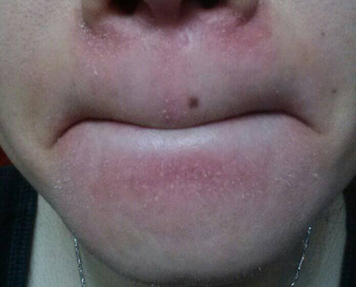 怀孕下巴、嘴角、鼻翼发红脱白皮屑,这是怎么了?从怀孕初期到现在14周了,下巴就红红的脱皮,后来慢慢地蔓延到嘴角、鼻翼都是(见图)。平时不痒,把皮搓掉,过一两天又脱皮,而且涂润肤乳和水都没用,芦荟胶、橄榄油也没效。因为怀孕了,也不敢乱用药,不知道怎么办了。
