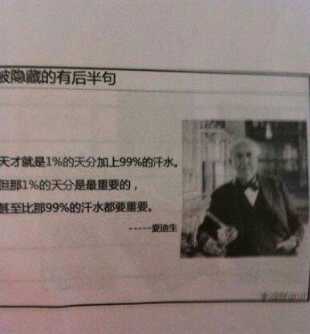 这个是什么意思啊?求解释,好奇不得 谁聪明,帮我看神图 帮忙 点击展开 匿名用户 2013-04-15 22:20 为您推荐: 其他回答 这个嘛,你哪儿看到的,,,不可证实。即便是真的,也要取其积极意义,毕竟谁也否定不了后天努力的重要性,不要因为这一句话就颠覆了正确的认识,爱迪生说的也不一定是真理,,, 匿名用户 2013-04-15 22:35 相关问题 ajdmjgupagmtmtmg 谁能把它解释一下!好奇是什么意思!谢谢 帮看看这张图,我去检查是不是怀孕,就给我做了个这个,每个话什么意思?都看不懂医生也不好好给我解释 怀孕13周胎儿b超图谁有,我现在好好奇宝宝长神鹅毛样子了,请问有人知道能告诉我吗?
