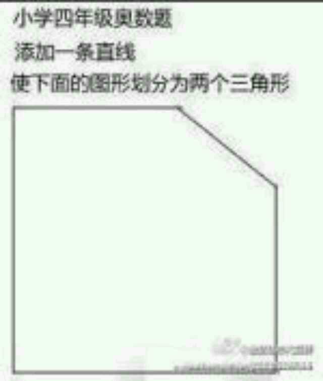 我有两招:一条傻大黑粗的直线——题目中可没规定这条直线该有多粗。把左上角这点怠块切下来,安到箭头所指的位置,这样一来顿清我们就得到了切下来的小三角形和三角形与四边形组成的大三孟辨剪角形了!~
