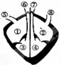 在图示中, ①为右心房, ②为左心房, ③为右心室, ④为左心室, ⑤体静脉, ⑥为肺动脉, ⑦为主动脉, ⑧为肺静脉.在血液循环中,血液是由静脉进入心房的.所以B和C项排除.当血液流经肺部毛细血管时,肺泡中的氧气通过气体扩散进入血液,血液由含氧少颜色暗红的静脉血变成含氧多的颜色鲜红的静脉血,随着肺...