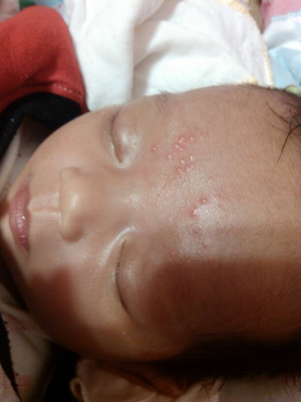 宝宝今天额头眉头上突然多了这么多的红点,是怎么了?听说满月后的婴儿都会这样,是真的吗?