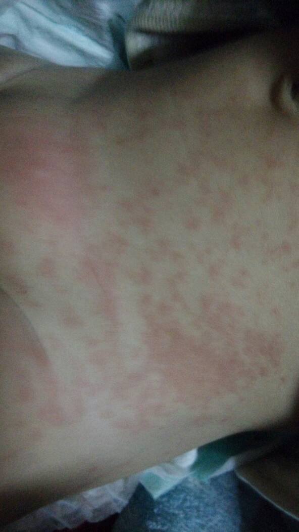 宝宝6个多月,第一天发烧伴有咳嗽,烧退后第三天身上出这种红疹,请问是婴幼儿急疹吗?