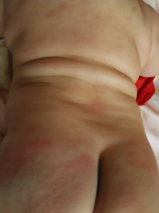 宝宝身上起红点,今天三天了,不知道是湿疹还是红疹,肚子上也有,宝宝也不高烧,也不闹,脸上头上也星星