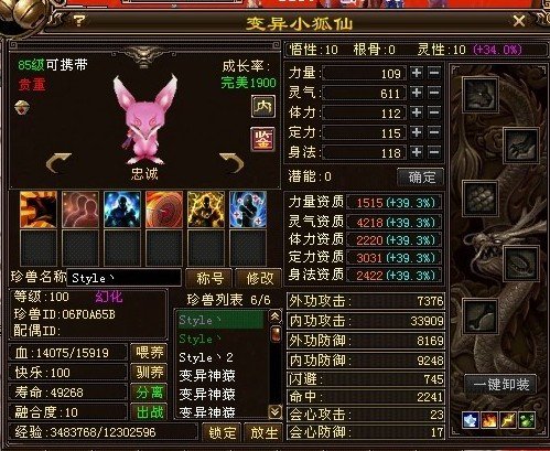 手机看不到图,附体好坏:1资质2技能3融合度4宝宝类型。现在主流用外攻宝宝作附体,这样攻击和体力都能保证,个别人喜欢身法的或平衡的,技能一般为精准疾闪沸血属性,天龙用4属性加沸血