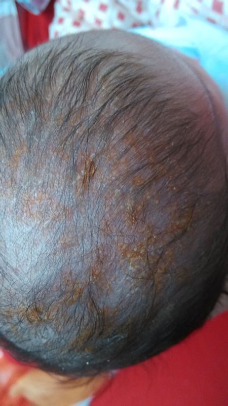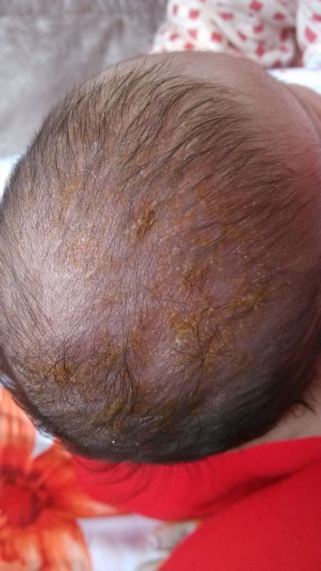 你好,孩子头上的乳痂属于脂溢性湿疹,多见于1-3个月的小婴儿,其前额,颊部,眉间皮肤潮红,覆盖后黄色油腻状鳞屑,头顶部有较厚的黄浆液痂,耳后,腋窝以及腹股沟可有擦烂,潮红以及渗出。孩子一般在6个月后改善饮食可以自愈。建议;可以用1%-4%硼酸溶液外洗,,然后外用炉甘石洗剂,也可外涂维生素B6软膏。