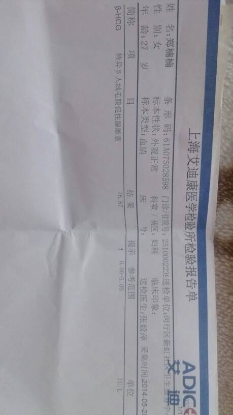 谁能帮我看看这化验结果是什么意思?谢谢 谁能帮我看看这化验结果是什么意思?谢谢 点击展开 霸占你、小宇宙 2014-06-06 21:54 为您推荐: 其他回答 你这种情况有以下原因:药物影响,流产的可能,或者其他妇科疾病导致HCG升高。 碰碰914 2014-06-06 22:45 你好,如果你没有其他疾病,你已经怀孕了。一般人绒膜促性腺激素的参考值是0-5,怀孕后值会增加。怀孕0.2~1周的值是5~50 1~2周的值是50~500。 碰碰914 2014-06-06 22:23 相关问题 化验结果,亲们帮我看看 请帮我看看孩子头发的化验结果 请帮我看看这个代表的是什么意思啊,谢谢!