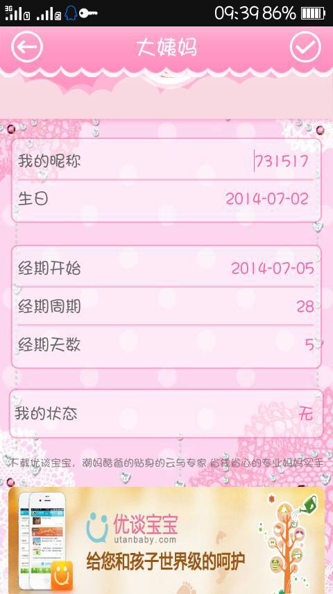 优谈大姨妈软件怎么设置??设置里只有这几个??不好用啊? 点击展开 匿名用户 2014-07-04 10:18 为您推荐: 其他回答 经期软件的话我觉得大姨吗不错哎,有很多健康知识和提示,界面做的也很清爽。你可以下载一个对比一下呗~ 郭子欣_AQJ1 2014-07-04 14:57 相关问题 大姨妈软件怎么设置?我自己弄得不对啊,求教 我找不到优谈宝宝这个软件的个人交易在哪 大姨妈下载软件安装