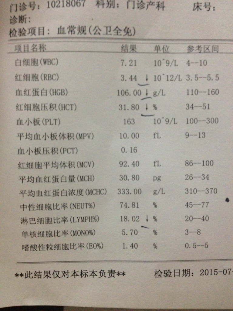 怀孕4个月红细胞RBC.3.44血红蛋白HGB.106红细胞压积HCT.31.80 淋巴 怀孕4个月红细胞RBC。3.44血红蛋白HGB。106红细胞压积HCT。31.80。 淋巴细胞比率LYMPH18.02有点低吃什么好,或者什么药好,这是为什么会偏低呢?对胎儿有影响吗? 点击展开 皓彦baby 2015-07-26 19:14 为您推荐: 其他回答 孕期是会这样的,老妈有点贫血,可以食补也可以吃点药 yangshuang8679 2015-07-27 09:03 没事。吧, 双子妈妈。 2015-07-27 07:46 咨询下医生 156*****785_U3D6 2015-07-26 23:44 没事,,, 秦硕 2015-07-26 22:54 可以的,也需要补叶酸 happy 2015-07-26 22:11 加载更多 相关问题 血红蛋白106,红细胞数3 71,红细胞压积33 2,贫血吗 血红蛋白70;红细胞压积25;淋巴细胞偏低请问大夫怎么… 宝宝淋巴细胞群和单细胞百分率有一点高,但红细胞压积、平圴体点和平均RBC血红蛋白含有点偏低怎么办?