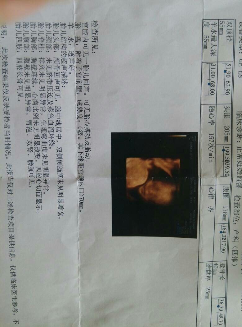 麻烦专家帮忙看一下我的四维彩超和唐筛报告有没有问题,四维图不清楚,老感觉宝宝嘴巴左上唇有阴影,鼻子