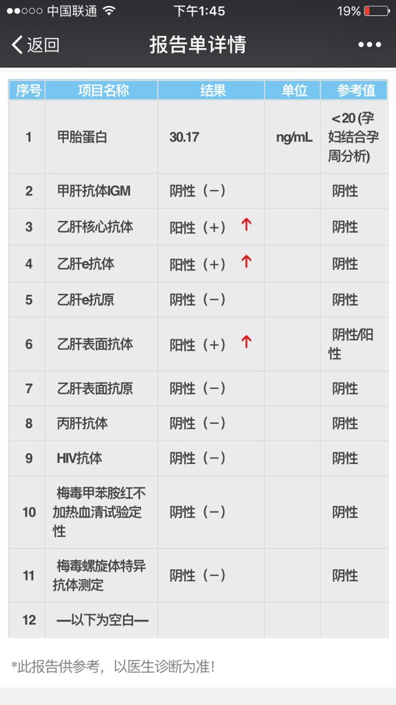 怀孕后做的乙肝检查,帮我看看有没有问题 怀孕后做的乙肝检查,帮我看看有没有问题怀孕后做的乙肝检查,帮我看看有没有问题 点击展开 匿名用户 2016-07-29 13:48 满意回答 这个表面抗体阳性是好的,说明没有感染乙肝病毒载量 cn#aapBLfGaLf 2016-07-29 13:52 宝宝知道提示您:回答为网友贡献,仅供参考。 相关问题 怀孕4个月,检查出乙肝有问题 大夫帮我看看检查结果有没有问题啊 怀孕后就做过b超,其他的没检查过,家里离得远,有没有一样没孕检的?必须得检查吗