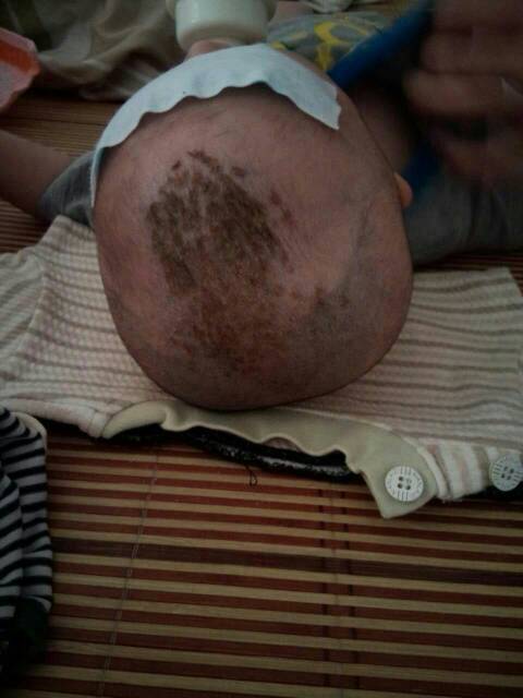 有医生在吗,我在给宝宝剃头发后看到宝宝头皮中间跟其他头皮颜色不一样,中间那一大块头皮都是像肿起来的