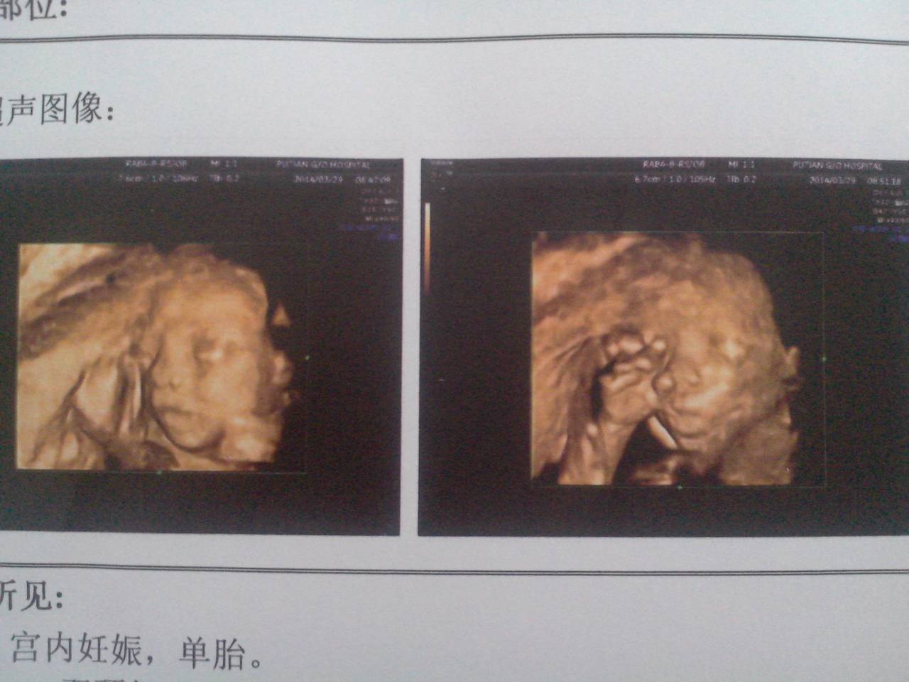 请问,这张B超图片宝宝眼睛是睁开还是闭着? 点击展开 匿名用户 2014-04-01 23:57 为您推荐: 其他回答 病情分析: 你好,其应该是闭合的。 指导意见: 保证充足的能量,增加鱼,肉,蛋,奶的摄入.注意做好孕检即可. 独水凡_xjeq 2014-04-02 10:05 相关问题 宝宝睡觉的时候有时哭有时笑、哭的时候就睁开眼睛了过会又闭上了,这是怎么回事? 请问宝宝出生两天了,吃,喝,拉都非常正常,就是睡得香,有一只眼睛老闭着,不打开,请问这眼睛有没有问 B超22周胎儿已经睁开眼睛正常吗?