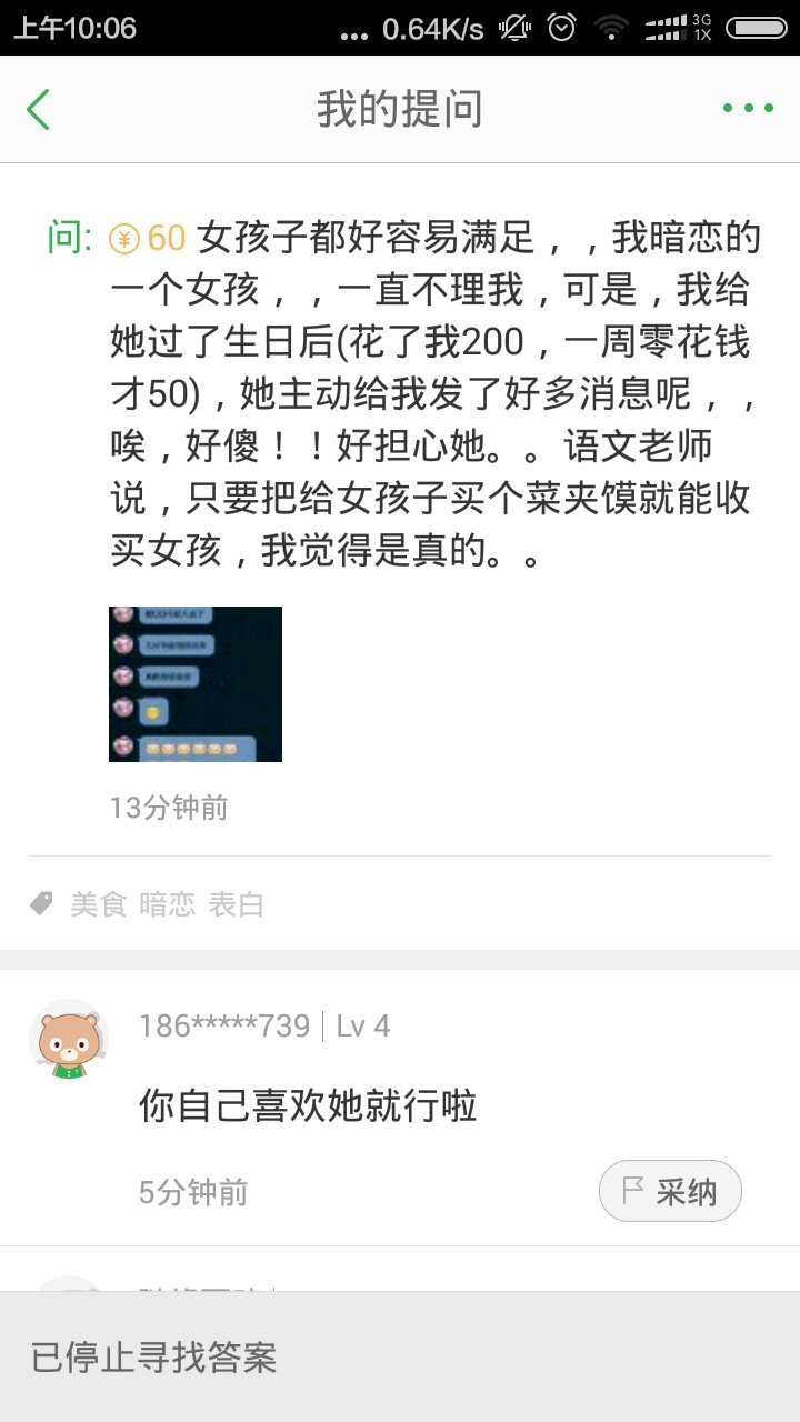 我暗恋的那个女孩看到这个提问,她会想什么 点击展开 匿名用户 2016-02-23 10:07 满意回答 她应该不会喜欢你了 匿名用户 2016-02-23 10:09 宝宝知道提示您:回答为网友贡献,仅供参考。 为您推荐: 其他回答 感激 匿名用户 2016-02-23 10:11 这次满足了,下次呢?会不会加码?次数会不会嫌少? 匿名用户 2016-02-23 10:10 你在侮辱她 匿名用户 2016-02-23 10:10 女人是感性动物,既然是感性动物,就不能用理性来衡量也就是说没有一个统一的公式、统一的标准。 匿名用户 2016-02-23 10:09 加载更多 相关问题 我暗恋的那个女孩说喜欢我,怎么回复她 我高中曾经喜欢一个女孩子是暗恋 但是我在读大学了,还要继续追那个女孩吗,我和她不是一个学校的 为什么六年了,还忘不了当年暗恋的那个女孩 但是又没办法找到她,所有同学都没有她联系方式