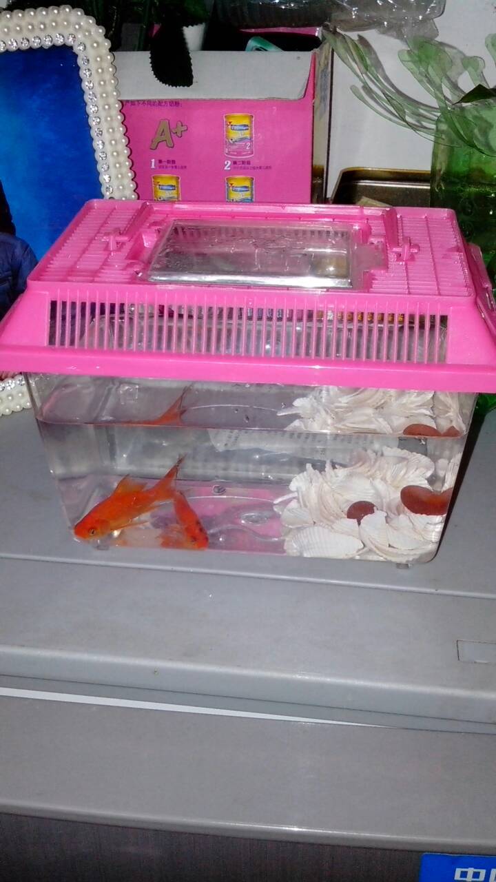 前天买了两条金鱼,因为家里有小孩,我怕玻璃鱼缸哪会没看好孩子给弄碎了,碎一个鱼缸不要紧就怕扎到手了
