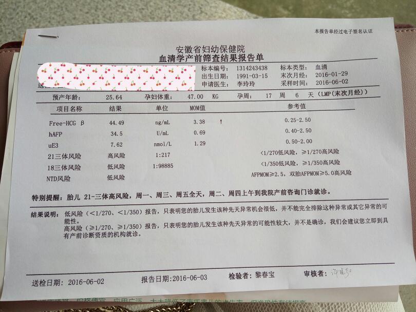 唐筛结果,难过,担心…闺密建议再去大医院检查一下,若还这样就做个无创DNA,真担心!宝宝,你一定要